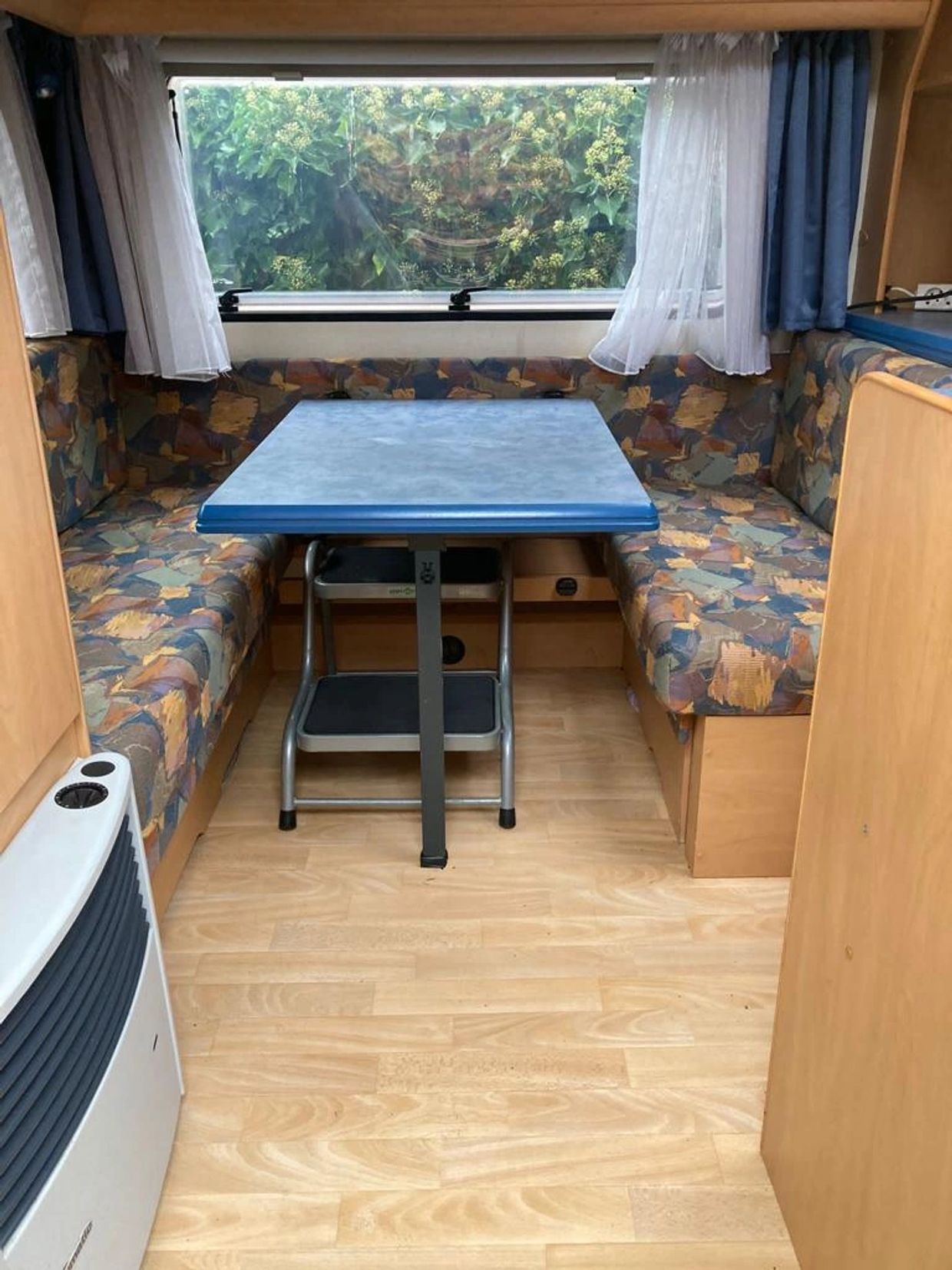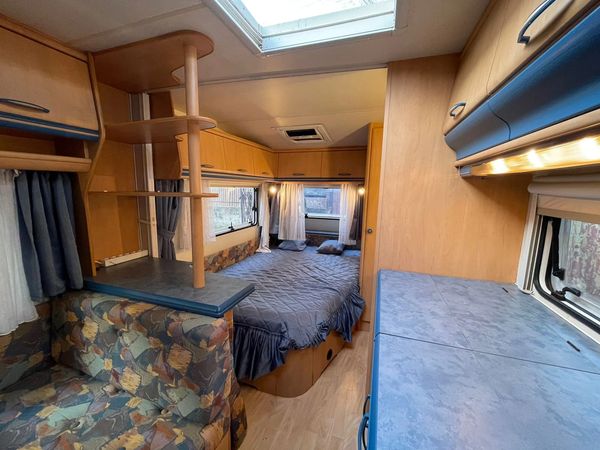 AIRE ACONDICIONADO, DUCHA, AGUA CALIENTE, REFRIGERADOR TRIVALENTE, COCINA TRES QUEMADORES, LARGO 6.1 ,ANCHO 2,3 ALTO 2,6. PESO 1.100 KILOS. CAMA DOBLE FIJA EN DORMITORIO, COMEDOR TRANSFORMABLE EN OTRA CAMA DOBLE, LAVAMANOS SEPARADO DEL WC, DUCHA, EXCELENTES ESPACIOS DE CARGA EN EL INTERIOR, MUY BIEN CUIDADA, MOSQUETERO, CLACKOUT EN LAS VENTANAS, , ESCALERILLA Y PORTA BICICLETA, BASE PARRILLA TECHO, EXCELENTE ESPACIO DE CARGA EN BAUL DELANTERO. POSEE CARPA